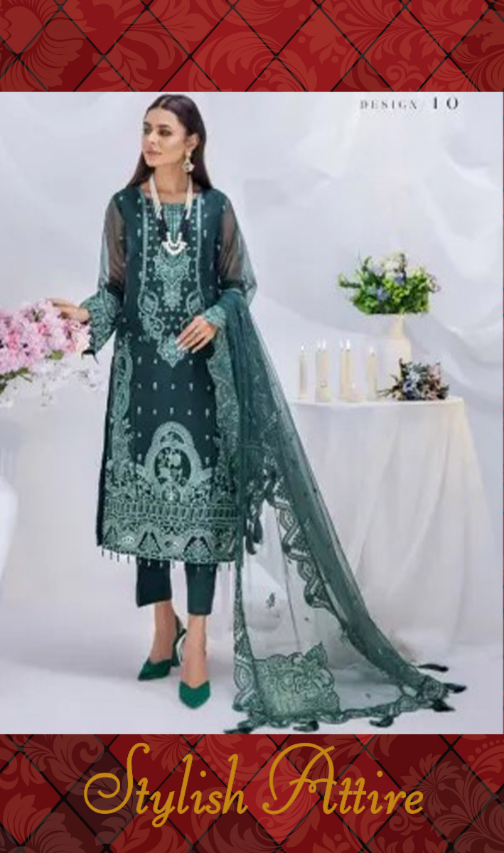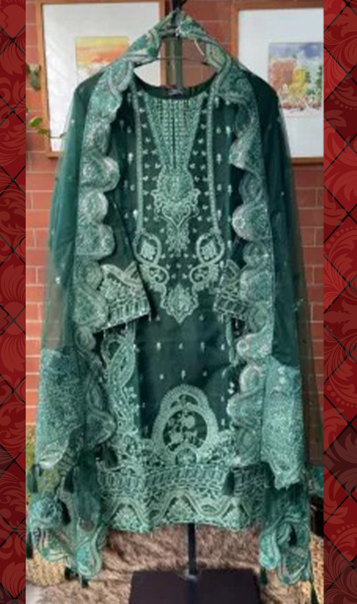 Adan’s Libas Organza Luxury Pret Stitched 3Pcs, Embroidered Shirt With Tassel, Sequence Work, & Embroidered Soft Net Dupatta & Embroidered Borders On Sleeves & Silk Pant