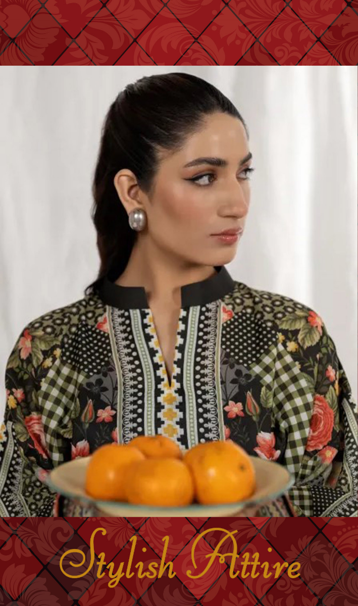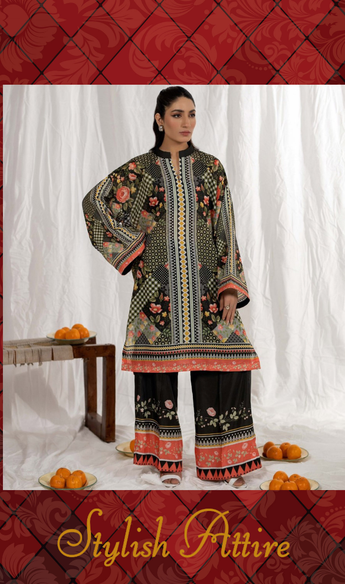 Adan's Libas Satin Lawn Stitched Co-Ords, Full Printed Shirt, & Full Printed Borders On Sleeves & Printed Satin lawn Plazu