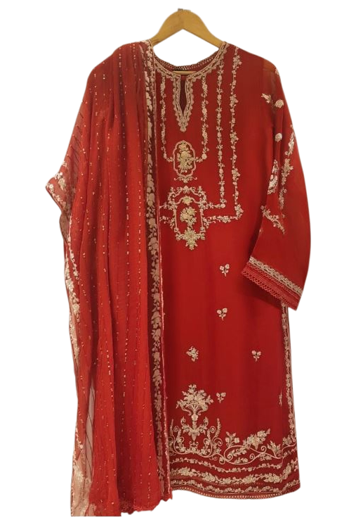TWO PIECE 100% PURE CHIFFON HEAVILY EMBROIDERED SHIRT AND DUPATTA