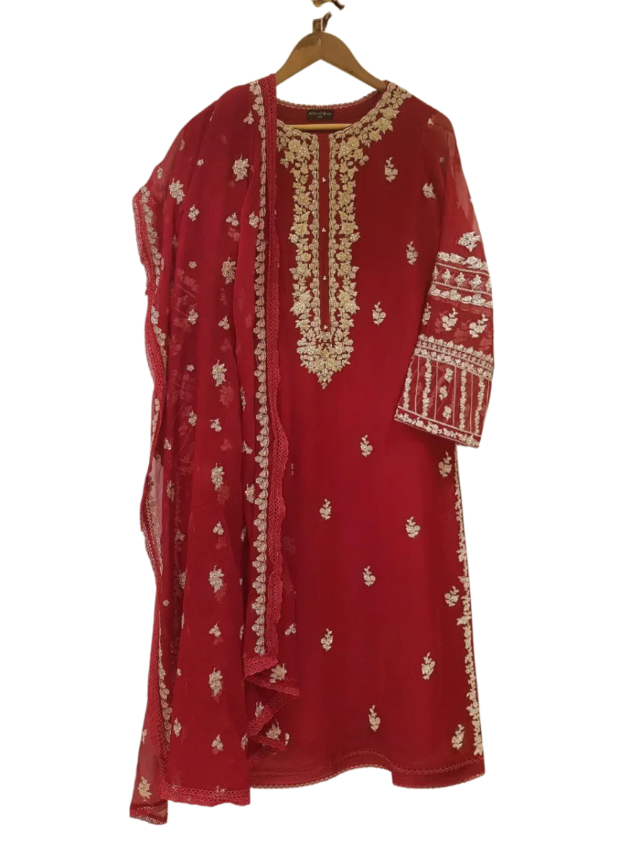 TWO PIECE 100% PURE CHIFFON HEAVILY EMBROIDERED SHIRT ALONG WITH DUPATTA