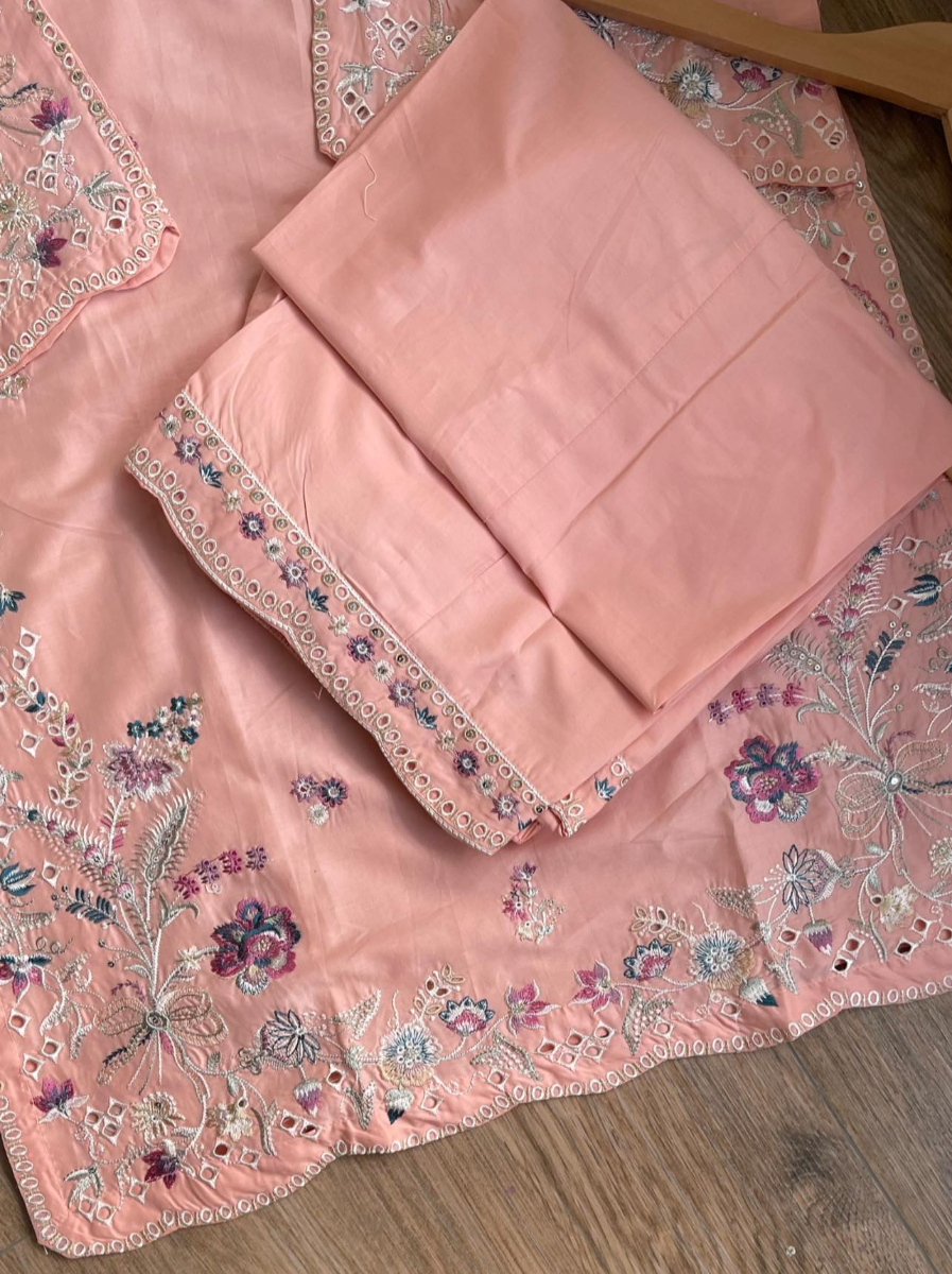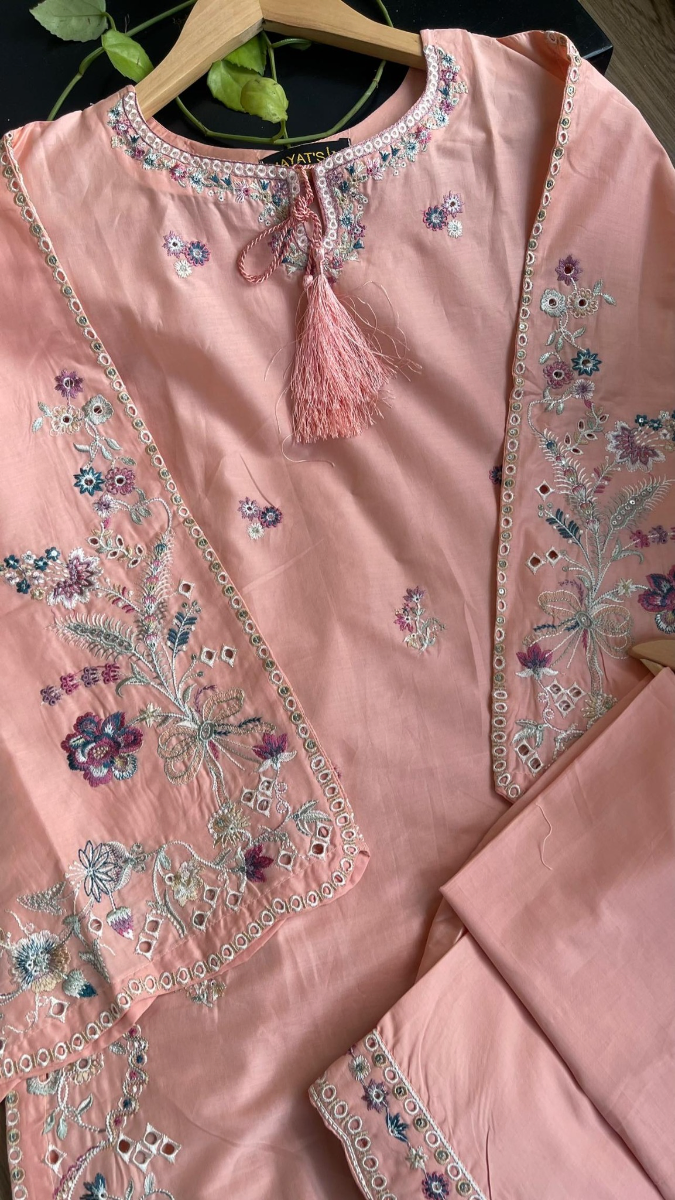 Original Pakistani Hayat’s Cotton Embroidered Stitched 2Pcs, Embroidered Shirt With Sequin Work & Tassel & Full Embroidered Work Borders On Sleeves & Cotton Pant