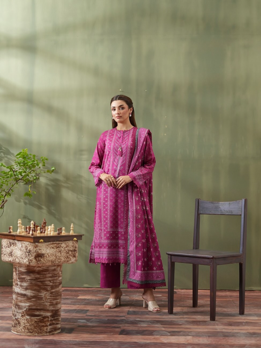 Original Pakistani Mausummery Premium Lawn Stitched 3Pcs, Full Printed Shirt With Parl, Tarsel, Lacework & Printed Lacework Borders On Sleeves, Printed Lacework Lawn Dupatta & Cotton Pant