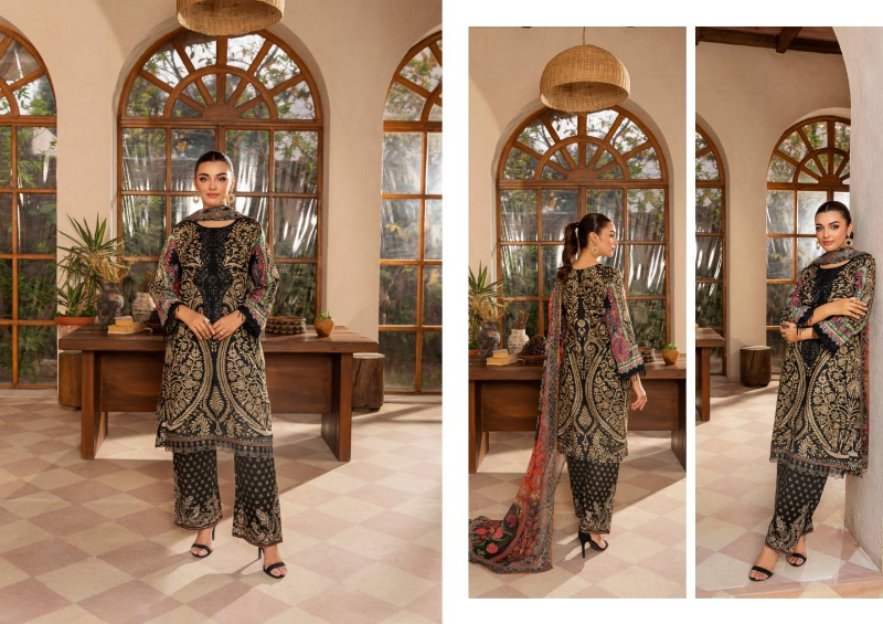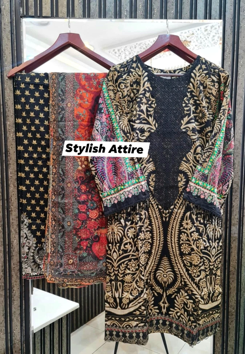 Original Pakistani Polawn Embroidered Stitched Lawn 3 Pcs, Full Embroidderd With Printed Shirt With Lase Work, Chiffon Printed Dupatta & Borders
