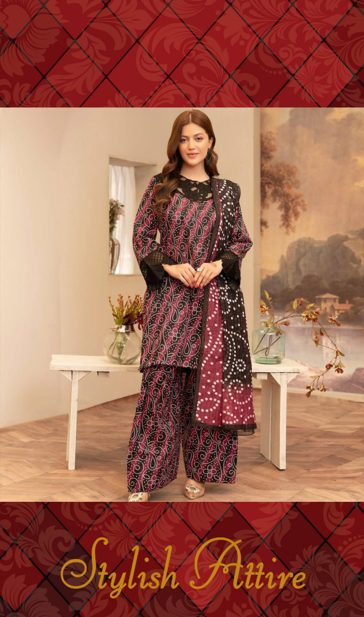 Additional Description: Maysa is a refined 3-piece outfit featuring intricate embroidery and artistic printwork. Paired with a traditional farshi shalwar, it offers a timeless and elegant look for any special occasion. Disclaimer: Actual product color may vary slightly from the image