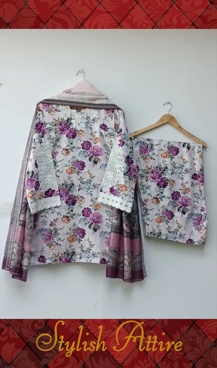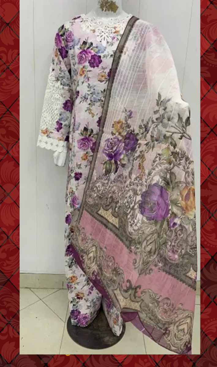 Additional Description: Maysa is a refined 3-piece outfit featuring intricate embroidery and artistic printwork. Paired with a traditional farshi shalwar, it offers a timeless and elegant look for any special occasion. Disclaimer: Actual product color may vary slightly from the image