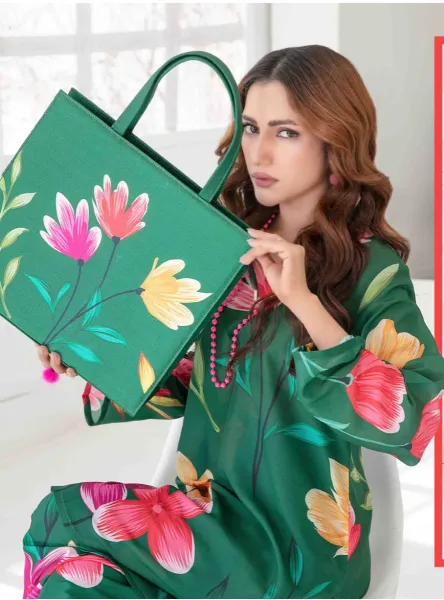 Original Tawakkal Pret Stitched Swiss Digital Printed 2pc with same matching Hand bags 🛍️ by TAWAKKAL FABRICS