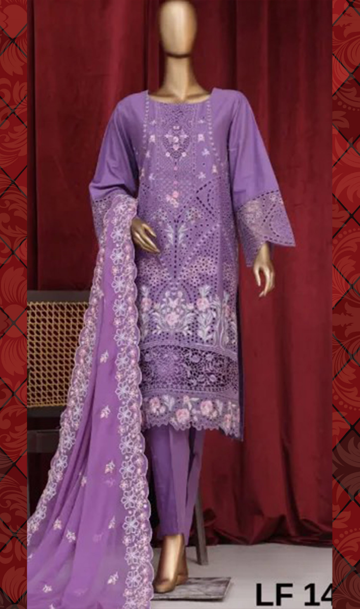 Pakistani Original Bin Saeed luxury Stitched Cotton Embroidered 3 Pcs,