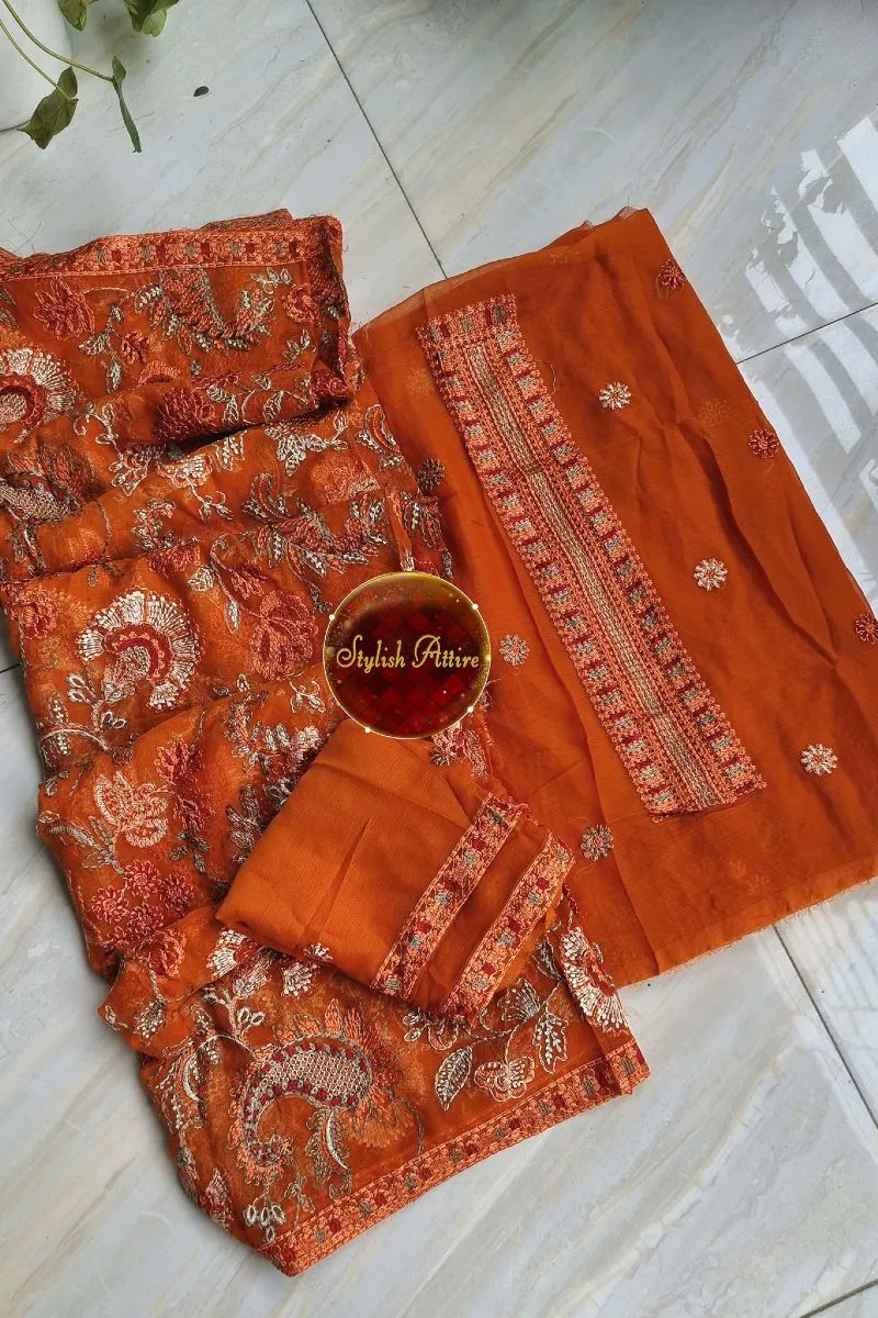 Pakistani Bareeza Unstitched Chiffon 2Pcs_RUST