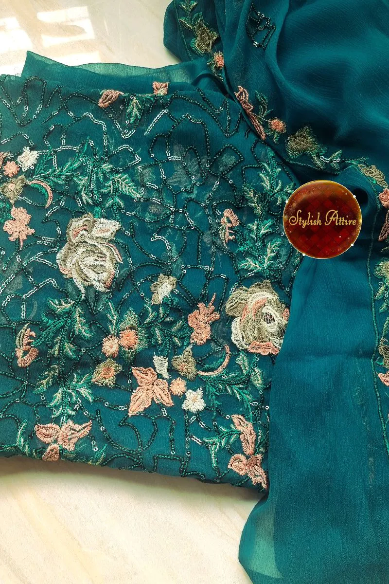 Pakistani Chiffon Unstitched 2Pcs _ Sea Green