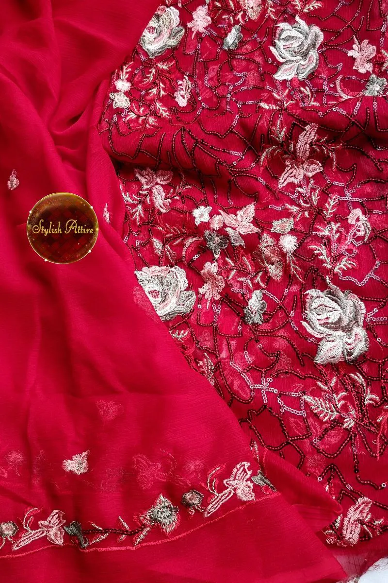 Pakistani Chiffon Unstitched 2Pcs_ Red