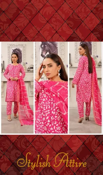 Pakistani Hayat's Stitched Cotton 3pcs, Printed Shirt With Lace Work, Maysori Cotton Dupatta & Printed Lace Work Borders On Sleeves & Printed Cotton Pant
