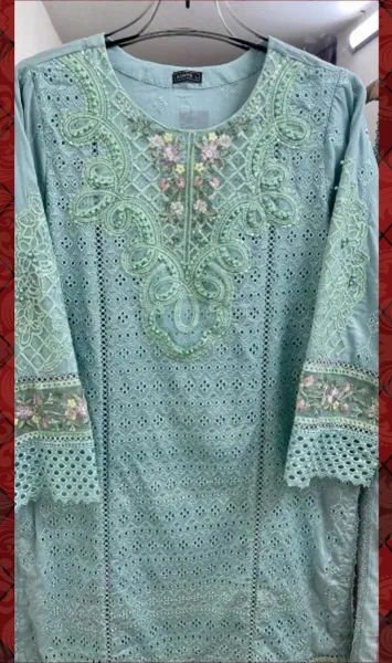 Pakistani Original Adan’s Libas Luxury Lawn Stitched 3 Pcs, Embroidered Shirt With Ston Work & Embroidered Borders On Sleeves With Parl & Printed Mysori Cotton&Silk Dupatta & Cotton Pant