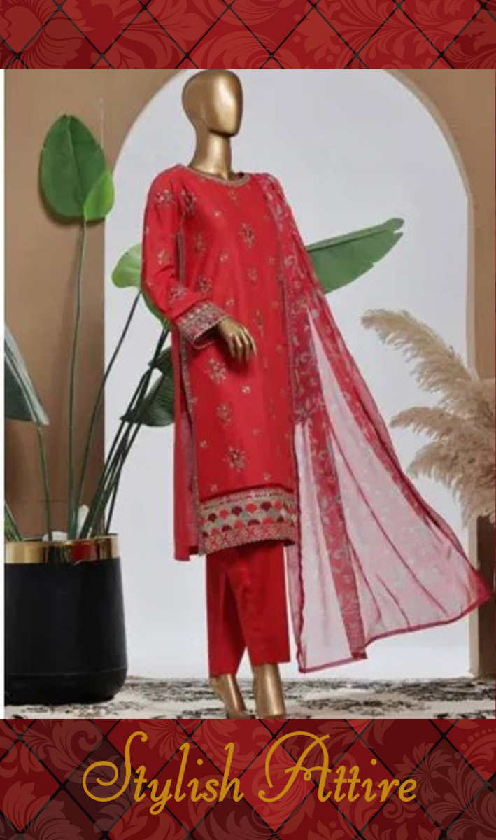 Pakistani Original Bin Saeed Luxury Plain Cotton Stitched 3 Pcs,