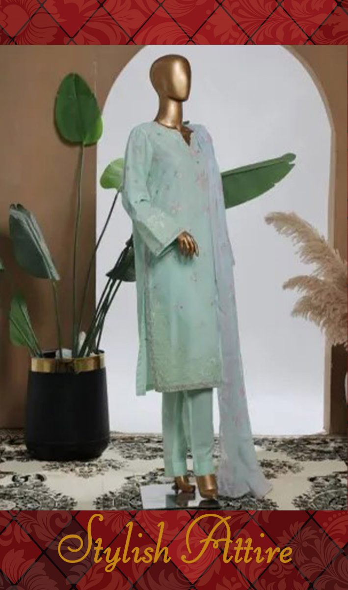 Pakistani Original Bin Saeed Luxury Plain Cotton Stitched 3 Pcs,