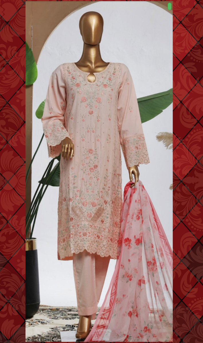 Pakistani Original Bin Saeed Luxury Plain Cotton Stitched 3 Pcs,