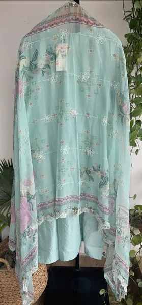Embroidered Shirt With Sequin Work & Printed Chiffon Dupatta & Embroidered Borders On Sleeve With & Cotton Pant