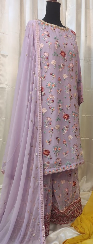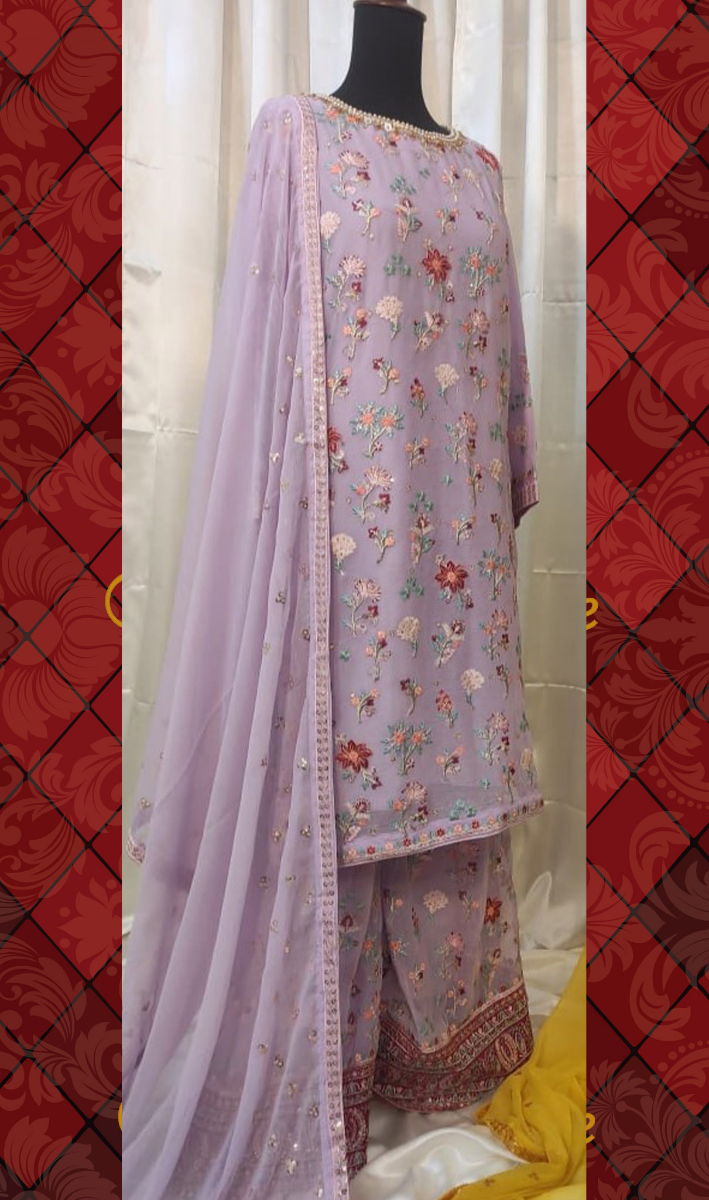 Pakistani Original Boutique Luxury Chiffon Stitched 3 Pcs, Embroidered Shirt With Sequin, Nacline Embroidered Work With Sequin, Parl, Stone & Embroidered Chiffon Dupatta With Sequin & Embroidered Borders On Sleeves With Sequin & Embroidered Chiffon With Sequin Pant