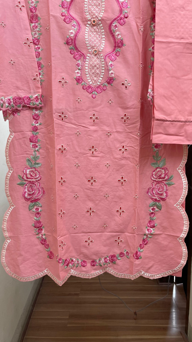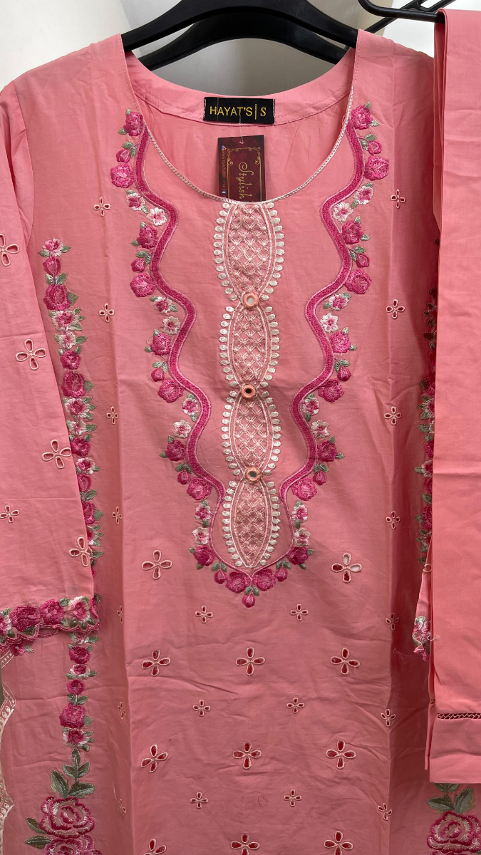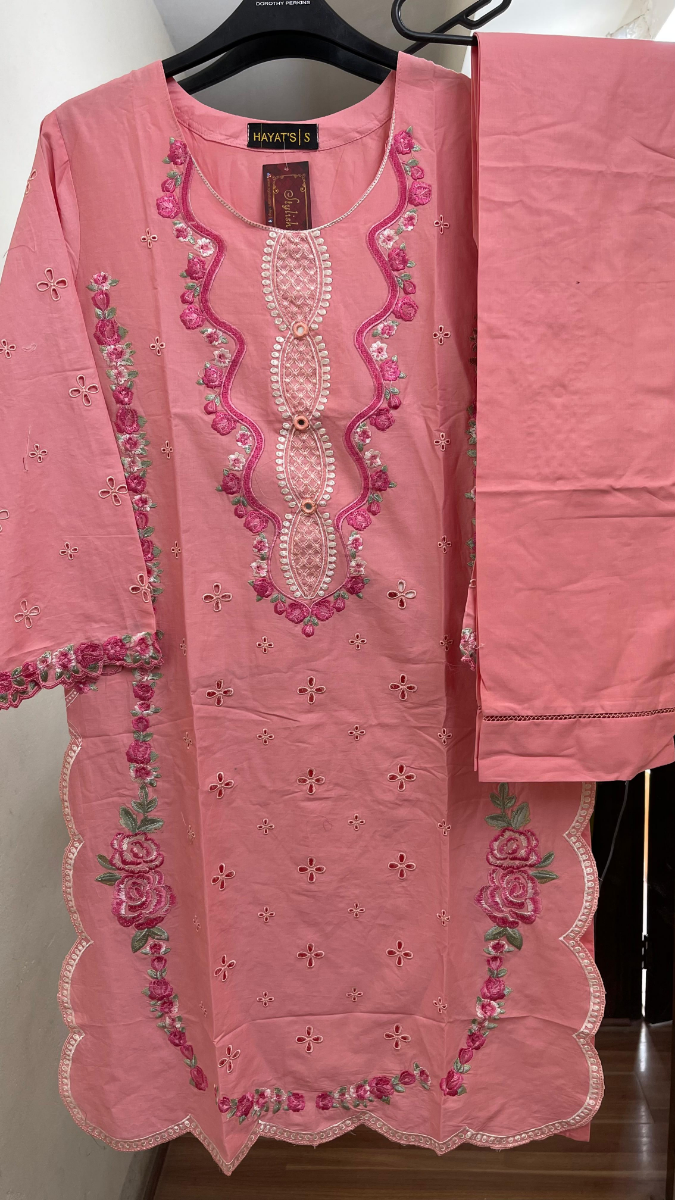 Pakistani Original Hayat Stitched Cotton Co-ords 2 Pcs, Embroidered Shirt With Embroidered work & Embroidered Borders On Sleeves & Cotton Pant