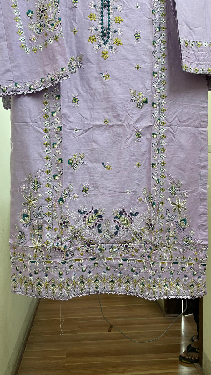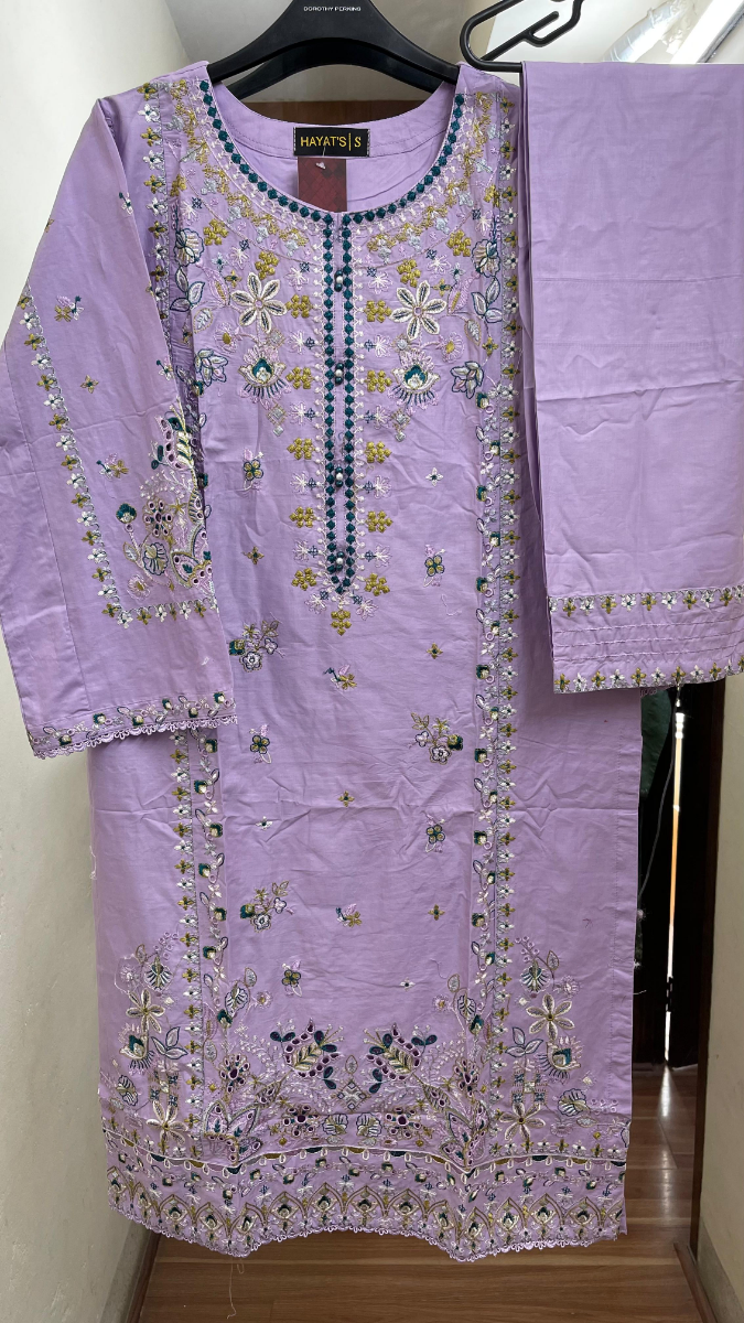 Pakistani Original Hayat Stitched Cotton Co-ords 2 Pcs, Embroidered Shirt With Embroidered work & Embroidered Borders On Sleeves & Cotton Pant