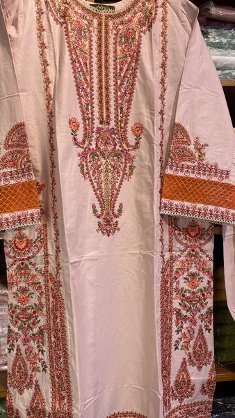 Pakistani Original Hayat's Cotton Embroidered Stitched 2Pcs, Embroidered Full Shirt With Sequin work, Lacework & Embroidered Borders On Sleeves & Cotton Pant