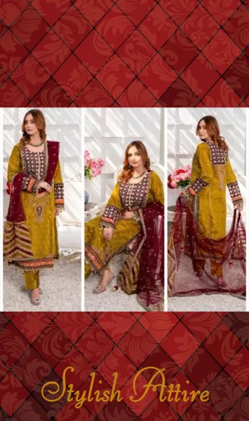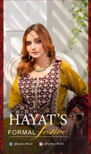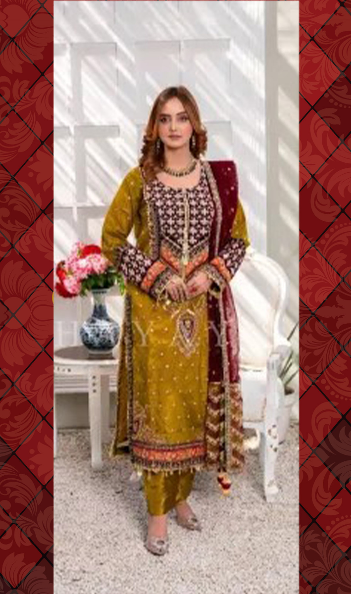 Pakistani Original Hayat's Luxury Organza Stitched 3Pcs, Embroidered Shirt With Sequin, Stone, Tassel & Embroidered Organza Net Dupatta & Embroidered Borders On Sleeves & Silk Pant