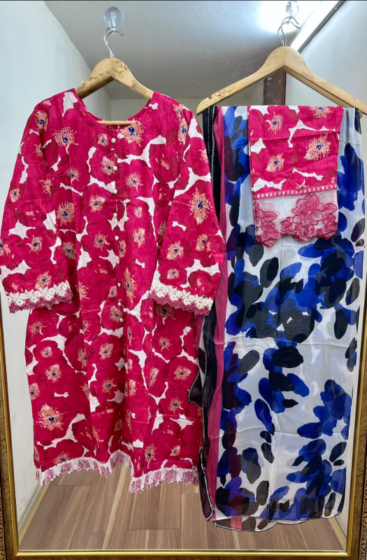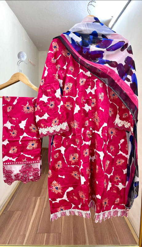 Digital Printed Lawn 3 Pcs Ready to Wear Suit with Silk Digital Printed Dupatta