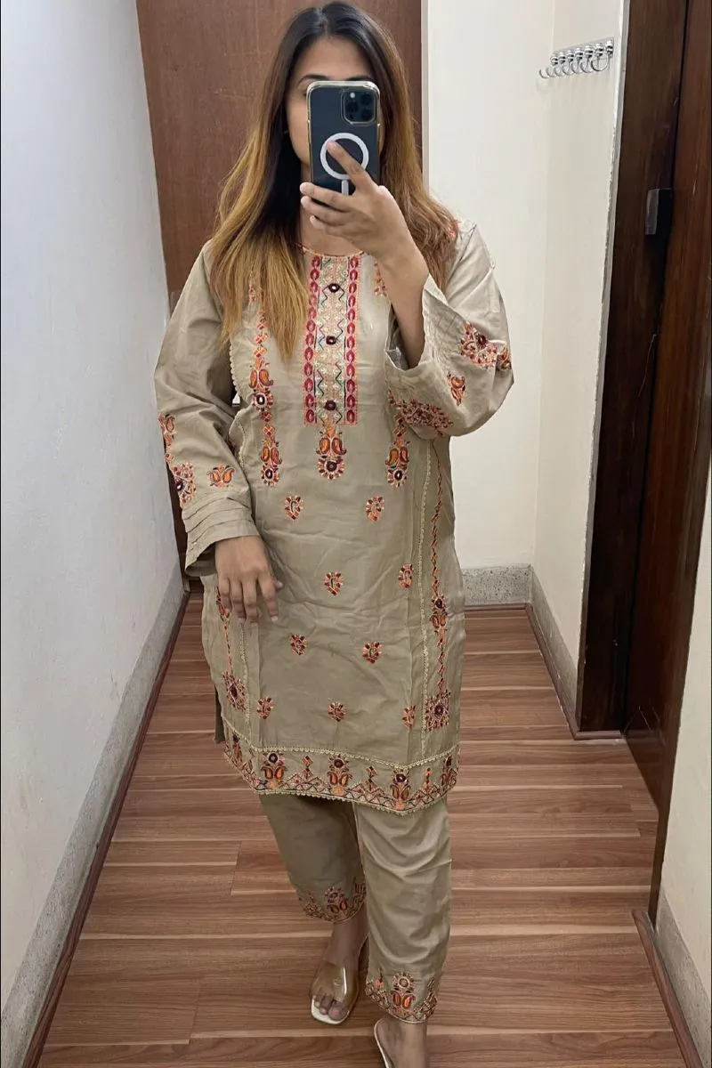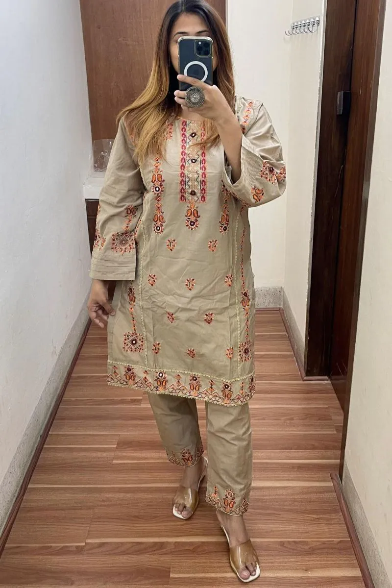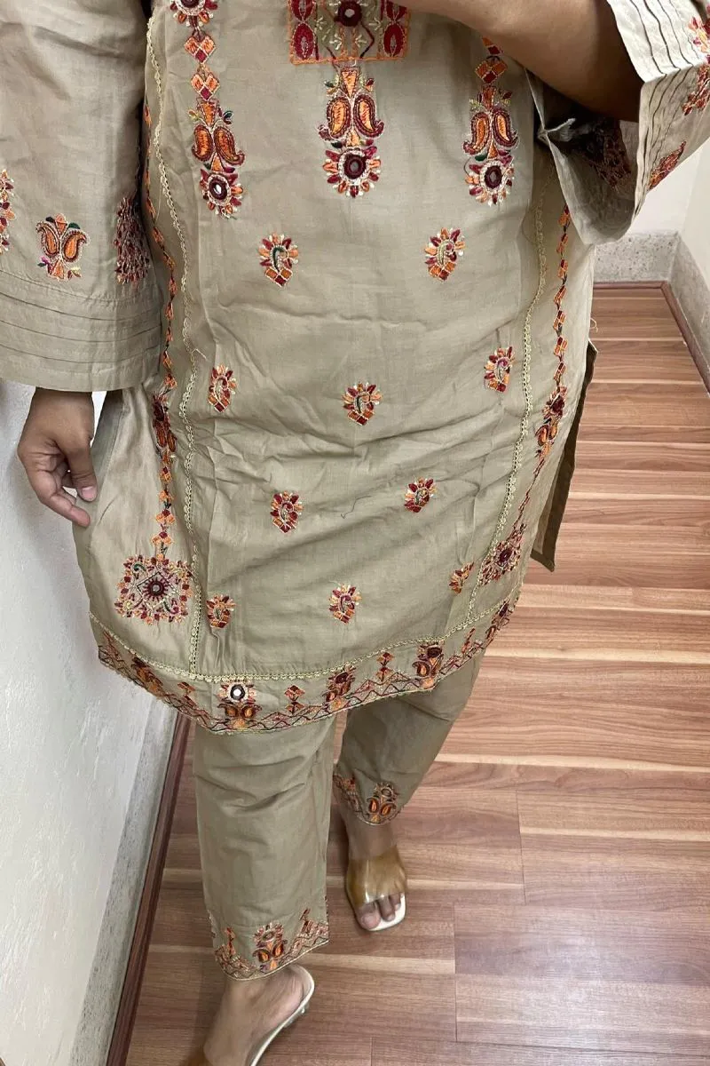 Pakistani Hayat's Stitched Cotton 2pcs, Embroidered Shirt Lacework, Mirror Work With Embroidered & Borders On Sleeves & Pant